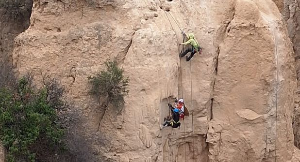 Al encontrarse suspendida en la cuerda, se instaló un sistema de ventaja mecánica utilizando equipo especializado, lo que permitió la extracción segura de la mujer.
