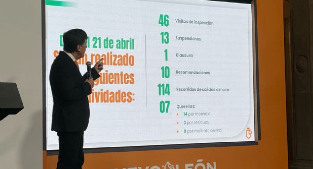 En este mismo tenor de las clausura y acciones implementadas por Medio Ambiente, el funcionario estatal reveló que del 1 de abril al 21, la dependencia ha realizado 46 visitas de inspección, 13 suspensiones, una clausura, 10 recomendaciones, 114 recorridos para verificar la calidad del aire y han interpuesto 7 querellas.