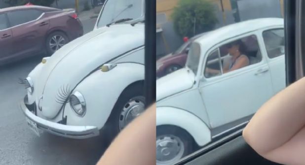 Aunque no es la primera vez que en Monterrey se ven autos personalizados con adornos creativos, lo que llamó la atención en esta ocasión fue lo bien que las pestañas combinaban con el diseño clásico del Volkswagen Sedán, conocido popularmente como Vocho.