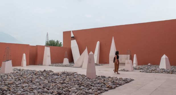 Mientras que en el patio del Museo MARCO, el artista coahuilense Carlos Vielma, recreó unos monumentos altos y puntiagudos que representan los límites entre México y Estados Unidos después de la guerra de 1848, cuando México perdió gran parte de su territorio.