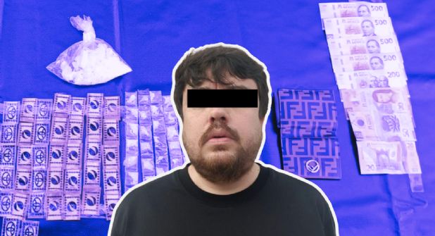 En la revisión precautoria hallaron un arma corta con siete cartuchos útiles, una báscula digital, 103 dosis de sustancia similar al cristal, dos teléfonos celulares y 12 mil 370 pesos en efectivo.