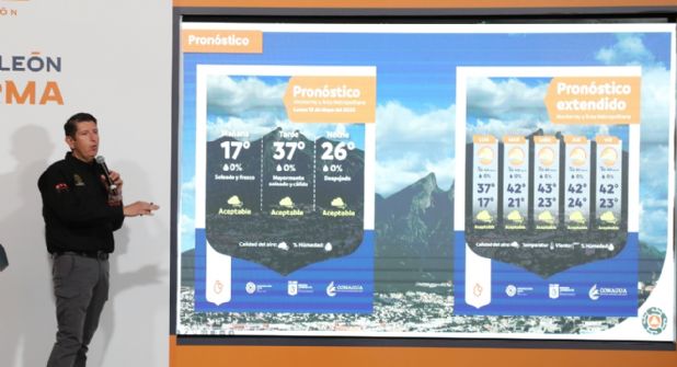 "Ahorita les vamos a decir por qué se hace una categoría de onda número uno, debido también a que vamos a tener prácticamente los días continuos por arriba de la temperatura normal que establece la media en Nuevo León”, explicó Erik Cavazos.