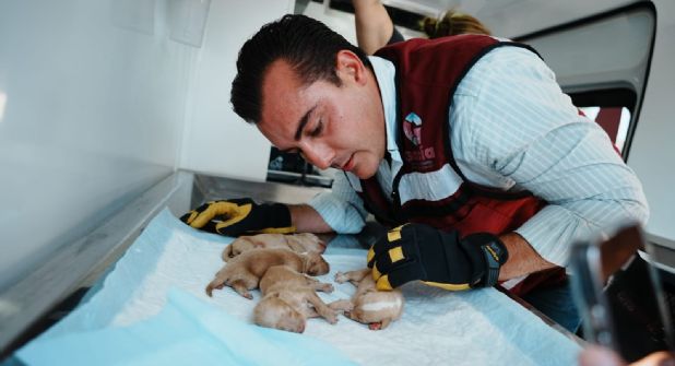 En el interior de la vivienda se encontraron acumulaciones de heces, gusanos y espacios completamente inhabitables. Durante la inspección, el propio alcalde recorrió cada habitación, logrando ubicar y rescatar a los animales sobrevivientes, incluyendo cuatro cachorros recién nacidos hallados entre los desechos.
