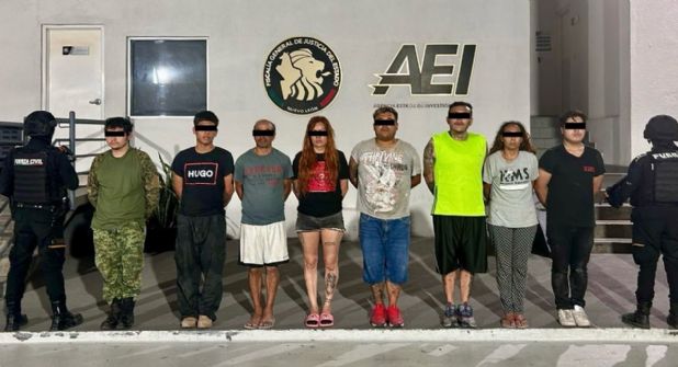 En el sitio fueron detenidos José “N”, de 23 años; Eduardo “N”, de 25; Priciliano “N”, de 48; Reyna “N”, de 35; Alberto “N”, de 23; Gerardo “N”, de 30; Blanca “N”, de 41; y Luis “N”, de 18 años. Tras una revisión precautoria a sus pertenencias, se les aseguraron nueve chalecos balísticos, un dron dañado, 19 pantalones tácticos, ocho pares de botas, 246 dosis de una sustancia sólida con características similares al cristal y tres básculas digitales.