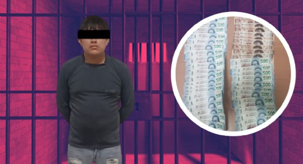 De acuerdo con el reporte oficial, el sujeto mostró una actitud agresiva, lo que motivó a los agentes a realizar una inspección preventiva. En el procedimiento se le encontraron 43 billetes de alta denominación, los cuales presentaban aparentes características de falsificación.