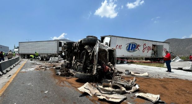 Un fuerte accidente entre dos tráileres provocó la movilización de los cuerpos de emergencia este miércoles sobre la autopista a Saltillo, a la altura de la caseta de cobro en Santa Catarina.