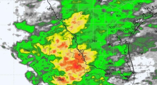 Los radares meteorológicos muestran celdas de tormenta activas, lo que indica alta probabilidad de precipitaciones intensas acompañadas de descargas eléctricas, caída de granizo y vientos fuertes.