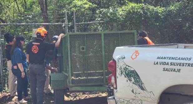 El predio donde se colocó la trampa mide aproximadamente 200 metros por 80 metros, se encuentra cercado y presenta abundante vegetación, lo que complica las labores de ubicación y contención del animal. En el interior de la trampa fue colocado cebo para facilitar su captura sin lastimarlo.