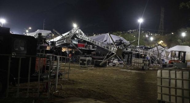 El evento iba a concluir con una presentación del grupo Bronco, pero antes de que iniciara, fuertes ráfagas de viento y lluvia provocaron el desplome de la estructura del escenario, generando una estampida y múltiples lesionados.