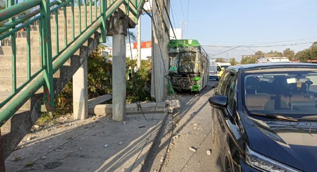 Un camión de pasajeros de la Ruta 85 protagonizó un accidente tras impactarse contra la bases de concreto de un puente peatonal en el municipio de Guadalupe.