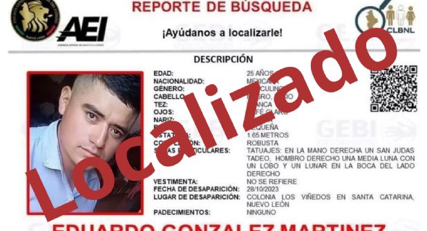Después de casi dos años de permanecer desaparecido, Eduardo González Martínez de 27 años, fue localizado este fin de semana en las celdas de la Policía de Monterrey, donde había sido detenido por una falta administrativa.