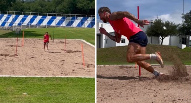 El experimentado defensor español compartió en redes sociales un video donde se le observa entrenando con intensidad sobre campo de arena.