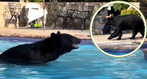Ante las altas temperaturas que se han registrado en los últimos días en Nuevo León, un oso negro fue captado dándose un chapuzón en una alberca de Chipinque, sorprendiendo a los paseantes que se encontraban en la zona.