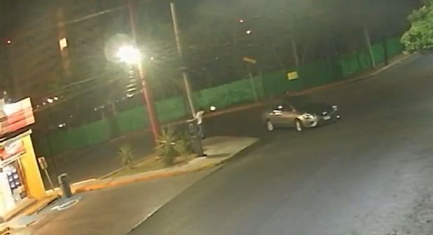 Posteriormente, Ángel Eduardo Sánchez Robledo regresa a su automóvil, y justo en ese momento el asaltante sale del Oxxo e intenta cruzar la calle.