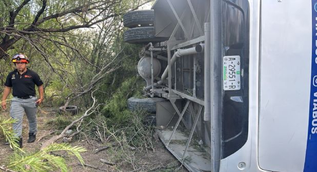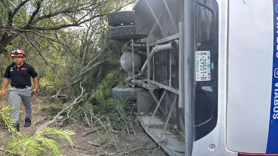 Un accidente vehicular registrado la mañana de este martes movilizó a diversas corporaciones de auxilio luego de que un camión de transporte de personal se saliera de la carretera a la altura del kilómetro 21 de la Carretera a Colombia, en el municipio de Salinas Victoria, Nuevo León.