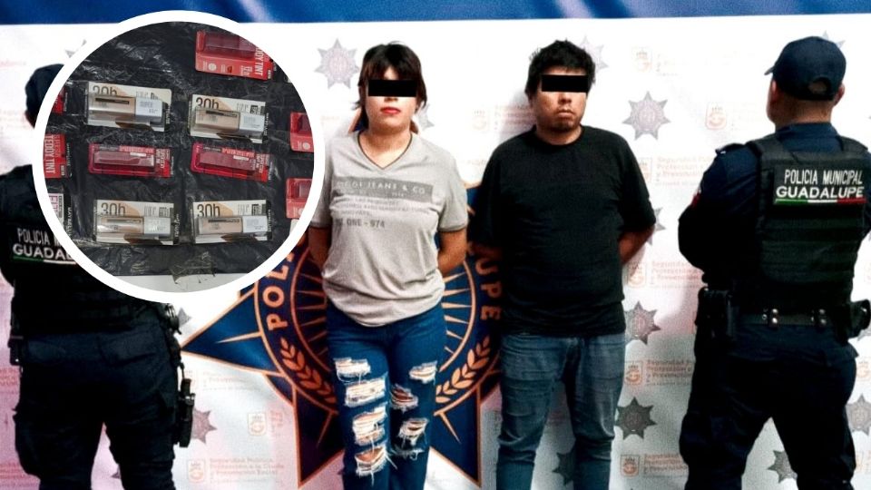 Elementos de la Secretaría de Seguridad Pública de Guadalupe detuvieron a un hombre y una mujer acusados de sustraer sin pagar diversos productos de maquillaje de una tienda E-Smart ubicada en la colonia Camino Real.