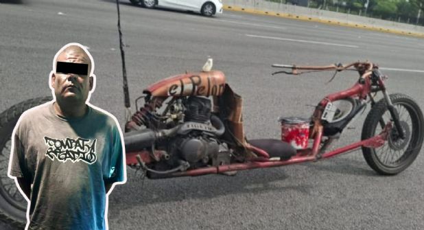 El individuo circulaba en una motocicleta sin placas, integrada con piezas de distintas marcas y colores, lo que llamó la atención de automovilistas que denunciaron su conducción temeraria.
