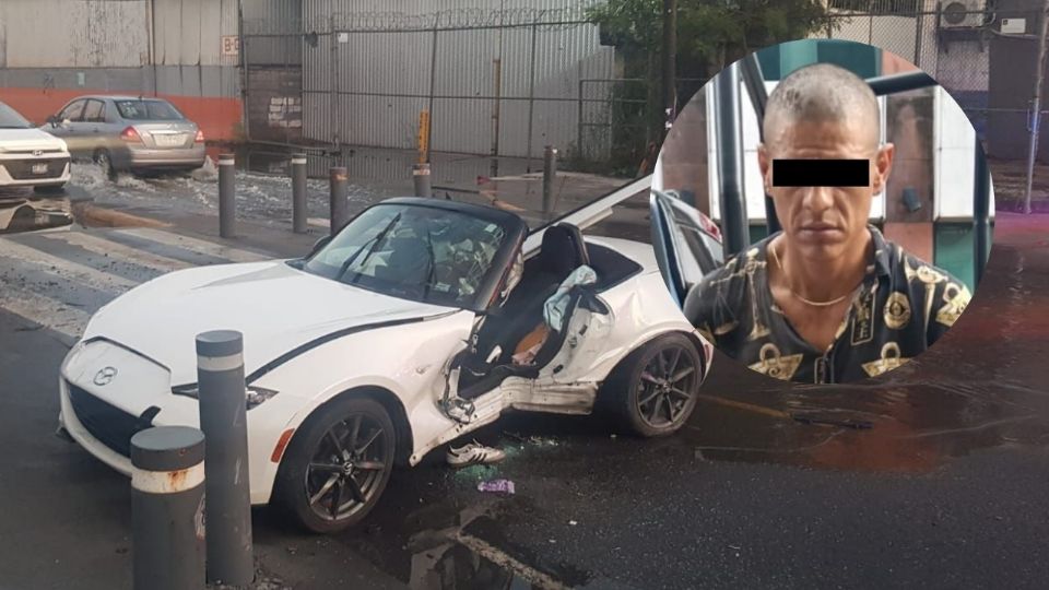 El conductor del Mazda MX5 blanco descapotable, sin placas de circulación, se impactó contra un tubo metálico protector de la banqueta. Al llegar los oficiales de Tránsito de Monterrey, encontraron al hombre solicitando ayuda por dolor físico tras el choque.