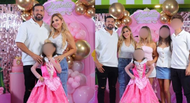 Karla Panini y Américo Garza celebraron este fin de semana el cumpleaños de la hija que tienen en común, Isabella, en el salón de fiestas “Paninos Land”. La pequeña lució un vestido rosa de princesa y corona inspirado en la Bella Durmiente, rodeada de globos, dulces, luces neón, pastel y unas letras grandes decoradas con su nombre.