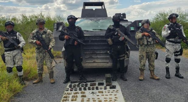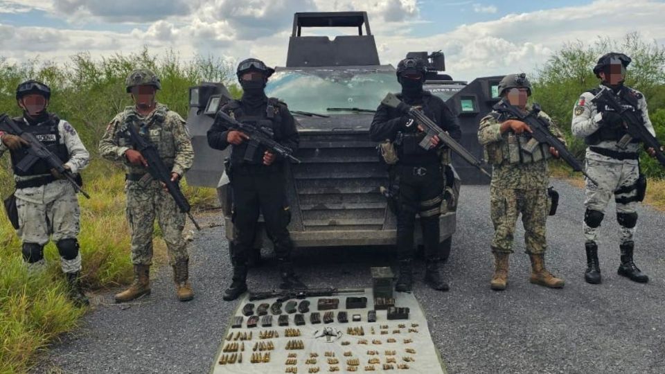 Entre lo asegurado se encuentra un vehículo con blindaje artesanal, cuatro armas largas, así como diversos cargadores, cartuchos y equipo táctico.