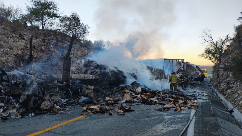 Los reportes oficiales indican que el accidente se originó cuando un tráiler con caja seca, que circulaba con dirección a Nuevo Laredo, intentó rebasar a otra unidad, maniobra que derivó en un impacto frontal contra un tráiler de doble remolque que transportaba cartón.