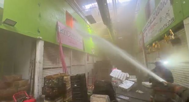 Elementos de Protección Civil de Nuevo León acudieron al sitio tras recibir el reporte alrededor de las 14:28 horas, y al arribar, confirmaron que el siniestro se concentraba en el área de frutas y verduras del comercio identificado como “Roes Hermanos”.