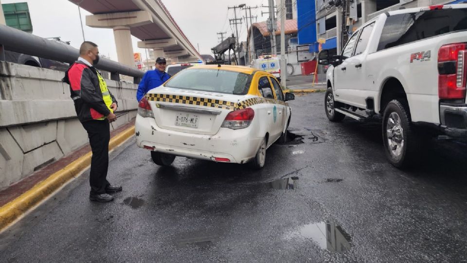 Un automóvil cayó en un pozo de aproximadamente dos metros de profundidad, lo que provocó la movilización de cuerpos de auxilio y la atención de tránsito en el lugar del incidente.