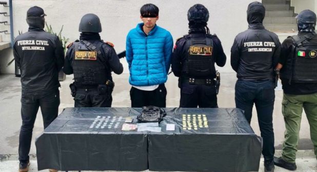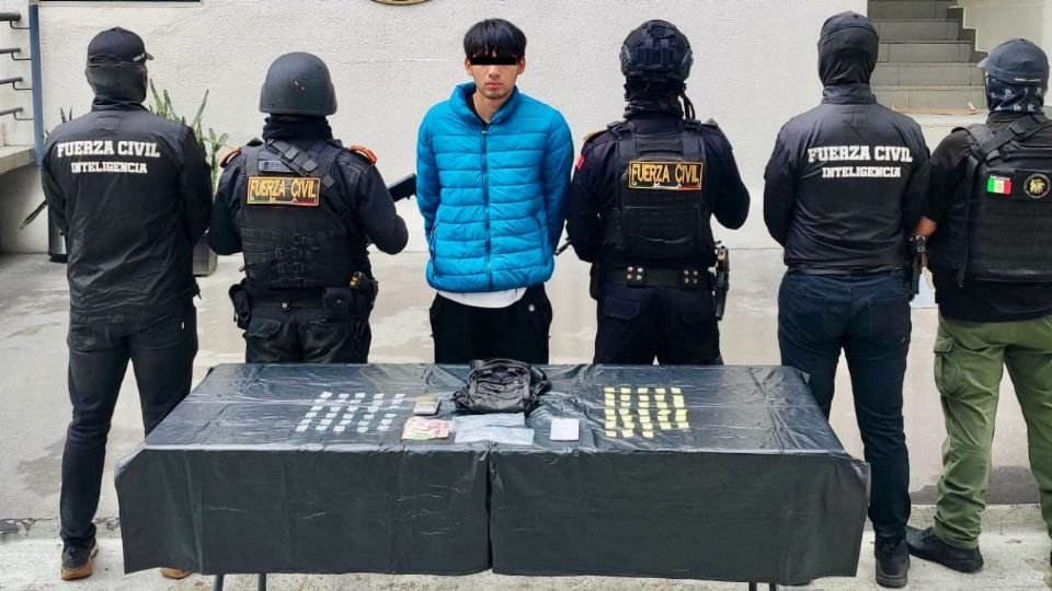 Un joven de 19 años fue detenido en Escobedo tras ser sorprendido en posesión de presunta droga, durante un operativo de seguridad realizado por elementos de Fuerza Civil y la Agencia Estatal de Investigaciones (AEI). Los hechos ocurrieron la tarde de este jueves en el cruce de las calles Artículo 123 y Ensenada, dentro de la colonia La Alianza.