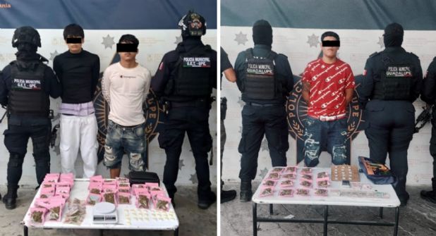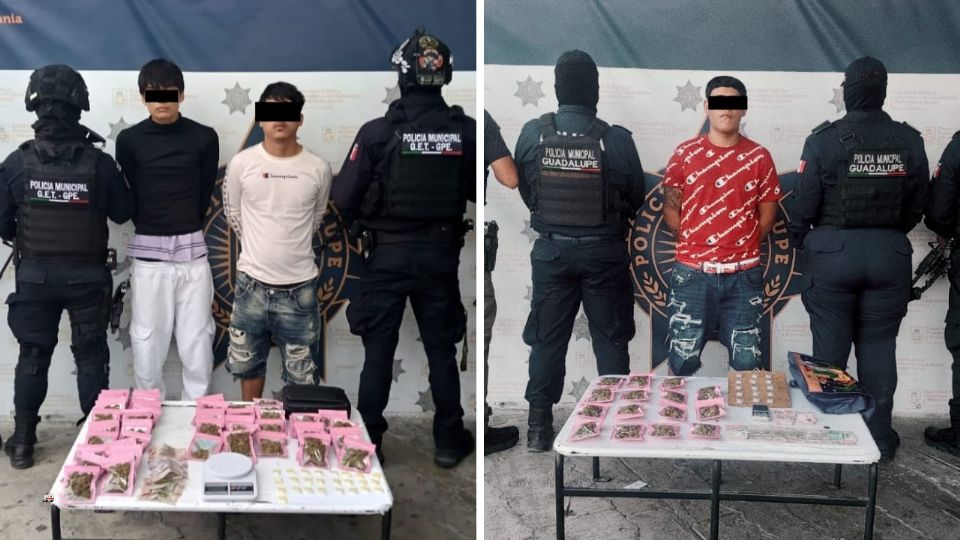 En una primera acción, en la colonia Valles de Guadalupe, fueron arrestados Lyan Jeremy, de 19 años, originario de la Ciudad de México, y Diego Alejandro, también de 19, de Nuevo León.