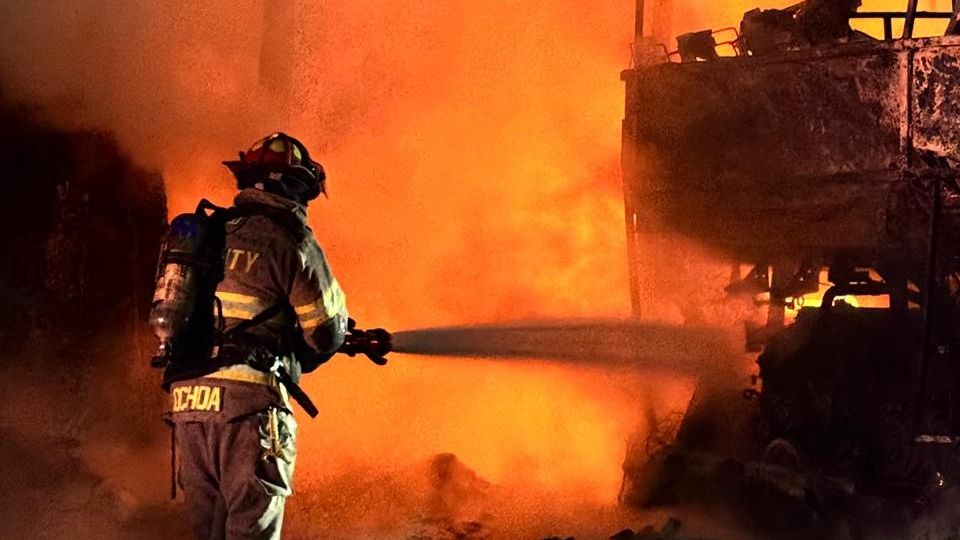 Al arribo de los rescatistas, se confirmó que dos camiones de transporte se encontraban envueltos en fuego, el cual se propagó rápidamente hasta consumir ambas unidades en su totalidad.