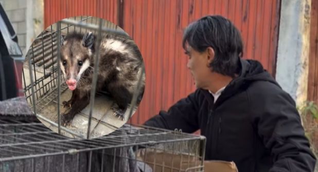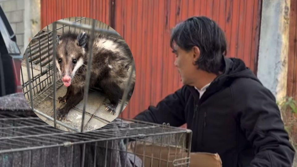 “Hola bebé, ya te vamos a reubicar ahorita”, se escucha decir a Zambrano en el video, mientras el tlacuache es resguardado dentro de una jaula.