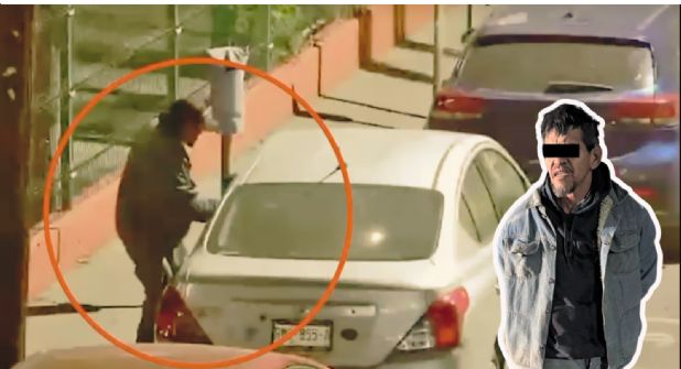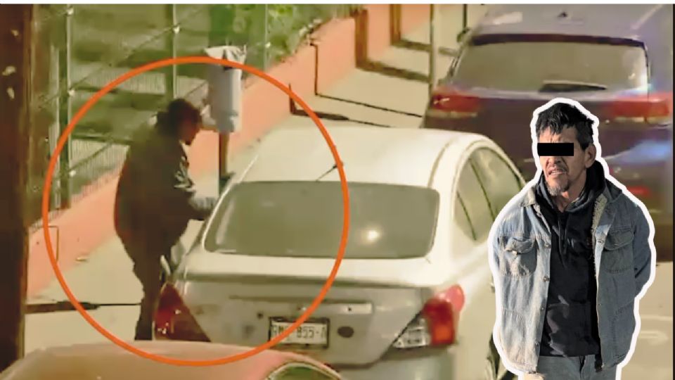 A través de las cámaras de monitoreo, el sujeto fue captado merodeando un Nissan Versa color gris, al cual le quebró el vidrio del lado del conductor para introducirse.