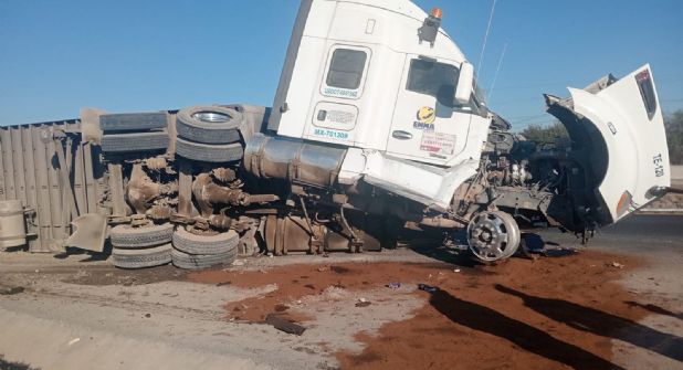 El vehículo involucrado es un tráiler color blanco, perteneciente a la empresa EMMA Transportes.