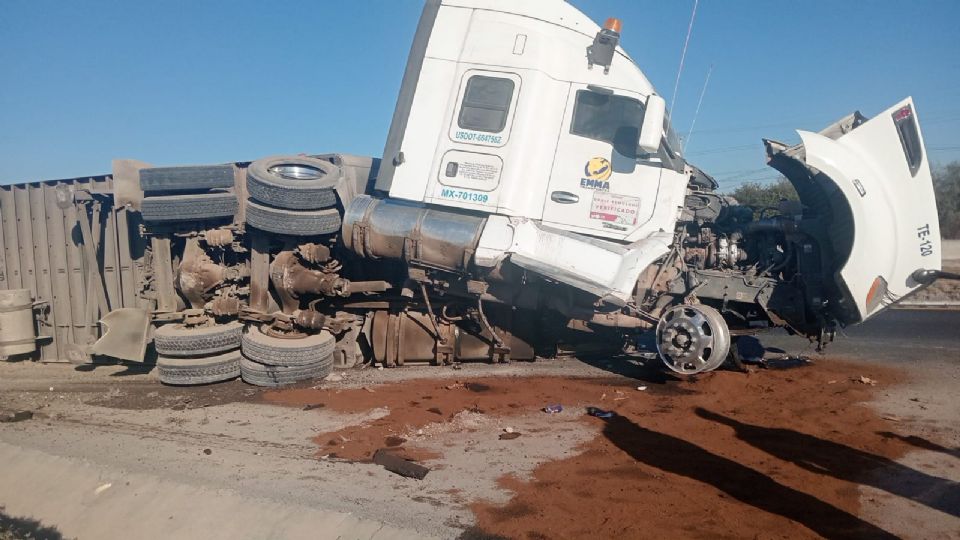 El reporte fue recibido alrededor de las 08:12 horas, indicando la volcadura de un vehículo de carga pesada con una persona lesionada. Al arribar al sitio, elementos de Protección Civil de Nuevo León confirmaron que se trataba de un tráiler de doble caja, cargado con pepino y chile, el cual terminó recostado dentro de un canalón a un costado de la carretera.