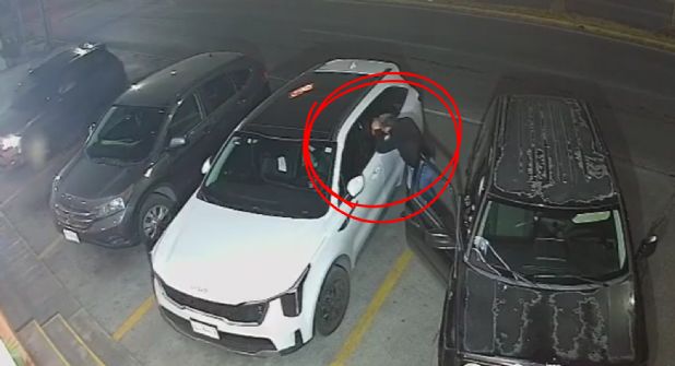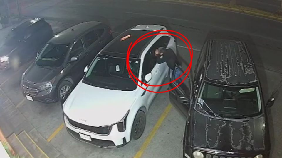 El modus operandi del delincuente quedó perfectamente documentado por las cámaras del establecimiento. En el video se aprecia cómo el hombre camina entre los autos estacionados hasta detectar una camioneta blanca. Sin titubear, se aproxima a la puerta trasera del lado del conductor y, utilizando una especie de herramienta, rompe y manipula el vidrio para acceder al interior.