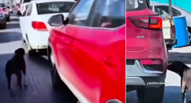En las imágenes que circulan en redes sociales, se observa a un perrito que intenta alcanzar un vehículo en medio del tráfico. Cada vez que la unidad se detiene, el animal se aproxima como si esperara que le abrieran la puerta para subir.