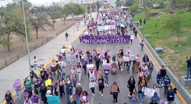 De acuerdo con los reportes de medios locales, el contingente —integrado por colectivos de madres buscadoras, mujeres con discapacidades y diversos grupos feministas— avanzó por Zaragoza y posteriormente tomó la avenida Zuazua con dirección a la Explanada de los Héroes.