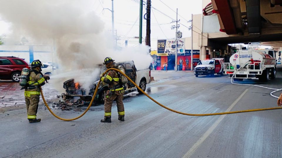 El incidente ocurrió alrededor de las 10:41 horas sobre la avenida Félix U. Gómez y su cruce con la calle Libertad, donde a través del sistema de emergencias se alertó sobre una camioneta en llamas. Al sitio acudieron de manera inmediata elementos de Protección Civil de Monterrey, quienes confirmaron que el fuego se concentraba en el área del motor de una camioneta tipo Pick Up Ford F-150.