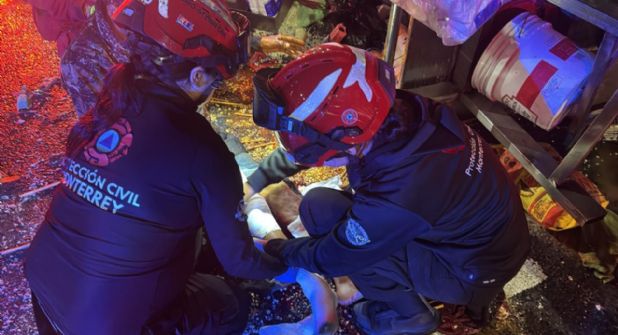 Tras la valoración inicial, fue trasladado por paramédicos de la Cruz Roja Mexicana al Hospital Universitario de Nuevo León para recibir atención especializada.