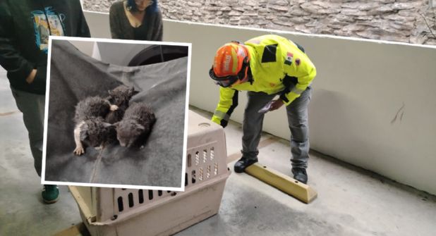 Los elementos ubicaron a los tres gatitos en un pasillo del estacionamiento del complejo habitacional, por lo que procedieron a su resguardo.