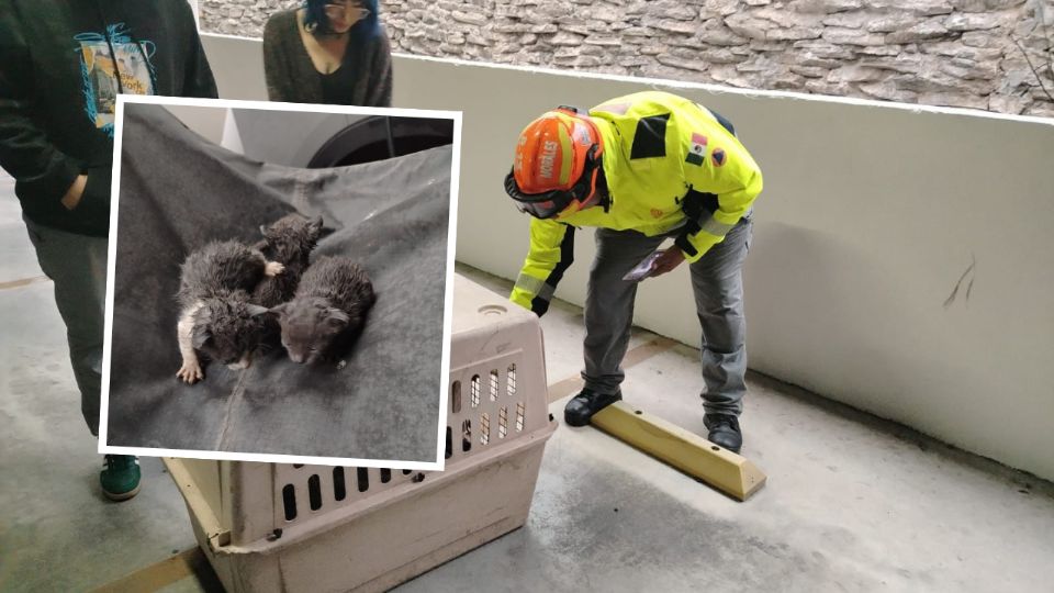 Elementos de Protección Civil de Nuevo León realizaron el rescate de tres cachorros de gato que fueron localizados a la intemperie en un complejo habitacional de la colonia Residencial Dinastía.