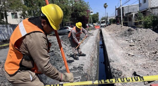 Cuadrillas de Agua y Drenaje de Monterrey se encuentran realizando trabajos de emergencia en la colonia Metroplex 4, ubicada en el municipio de Apodaca, debido a la rotura de una tubería general de 6 pulgadas de diámetro.
