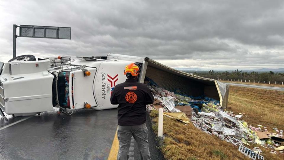 Una volcadura de un tractocamión se registró la madrugada de este domingo en la autopista a Laredo, a la altura del kilómetro 44, en el municipio de Salinas Victoria.