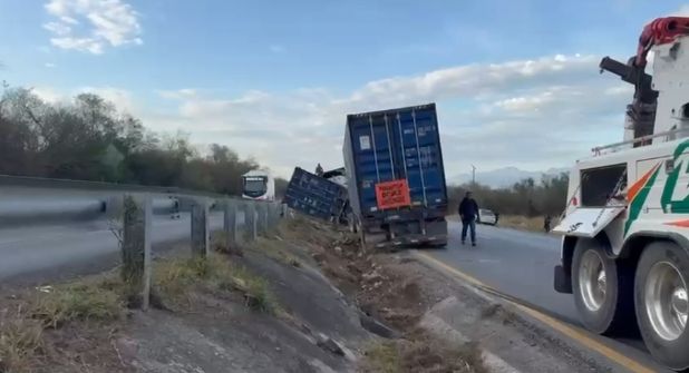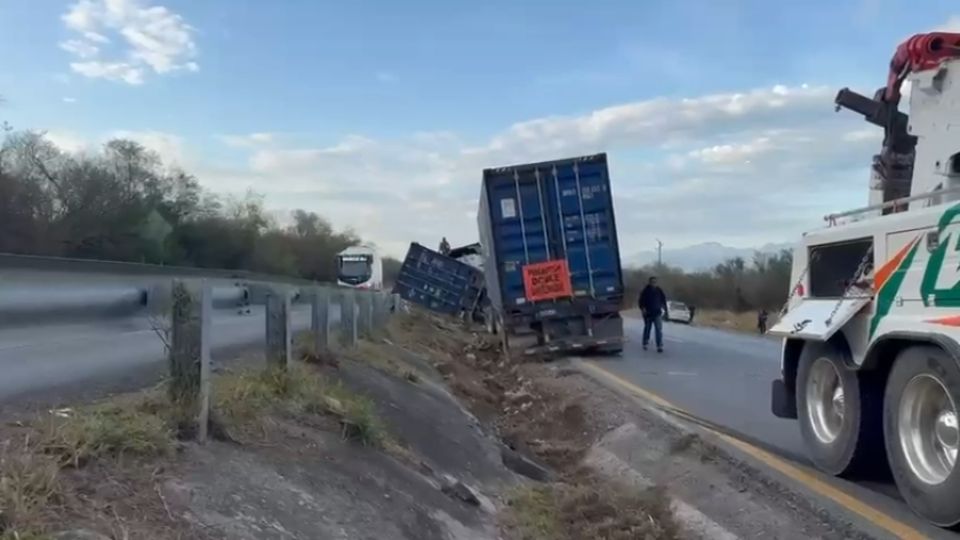 El incidente fue atendido por elementos de Protección Civil Nuevo León, quienes acudieron tras recibir el reporte alrededor de las 07:17 horas. Al llegar al sitio, localizaron un tractocamión tipo full con contenedor marino vacío, el cual terminó semi volcado sobre el camellón central, afectando parcialmente la circulación en ambos sentidos.
