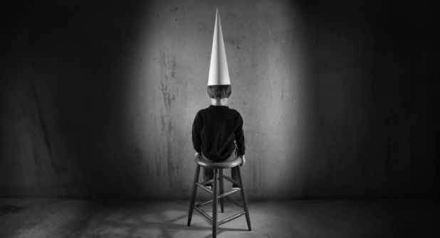 Se cuenta también que, en la tarima en que estaba el escritorio del profesor, paraban al chamaco mal portado de espaldas al salón para avergonzarlo con un cucurucho de cartulina a modo de gorro, o esas orejas de burro que yo solo recuerdo sobre la cabeza de Daniel el Travieso o de Pinocho, antes de que le saliera rabo y su voz se convirtiera en rebuzno, por ignorar a Pepe Grillo y desviarse del buen camino.