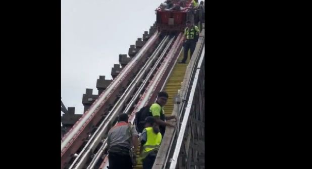 En el carrito se ven a varias personas que se encuentran varadas en la parte alta del juego mecánico, aunque se muestran bastante calmados en el video se escuchan los gritos de las personas que estaban en la fila del juego.