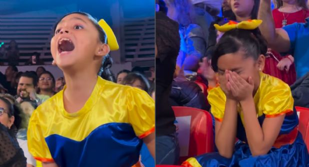 Hasta ahora no se sabe si fue la mamá quien grabó el video o si un asistente del evento captó el momento, pero esta conmovedora situación fue compartida en las redes sociales del famoso show infantil, quienes en su post expresaron lo siguiente.