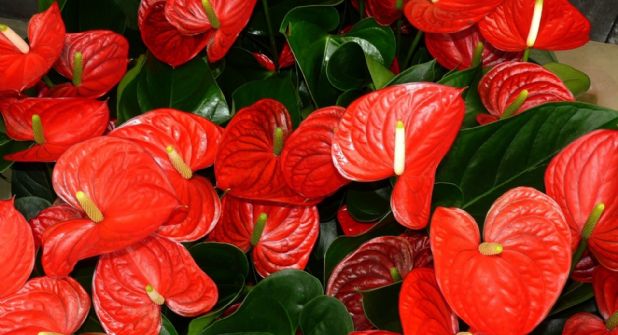 Anturios con flores más rojas: