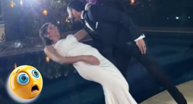 Y es que el hombre dejó caer intencionalmente a su esposa en una alberca durante la fiesta de su boda en Egipto, mientras la pareja posaba junto a un espejo de agua para una fotografía. El fotógrafo Emad Joe captó el instante en que el hombre sostenía a su compañera sentimental, quien se inclinaba ligeramente hacia la piscina, pero cuando parecía que se trataba de una escena romántica, el esposo soltó a la mujer de forma deliberada.