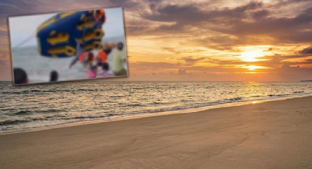 El impacto no solo afectó a quienes viajaban en el inflable durante este Accidente en Indonesia. Varias personas que descansaban en la playa fueron golpeadas por el objeto y los pasajeros lanzados.